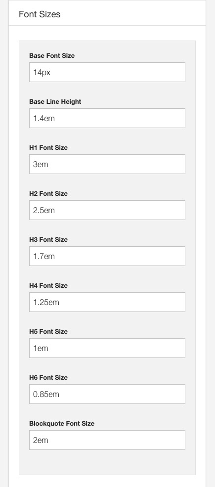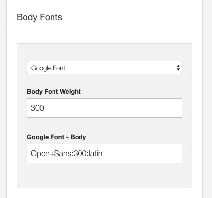 In addition to this the families and their weights are easily specified for the body, heading, menu and logo fonts.